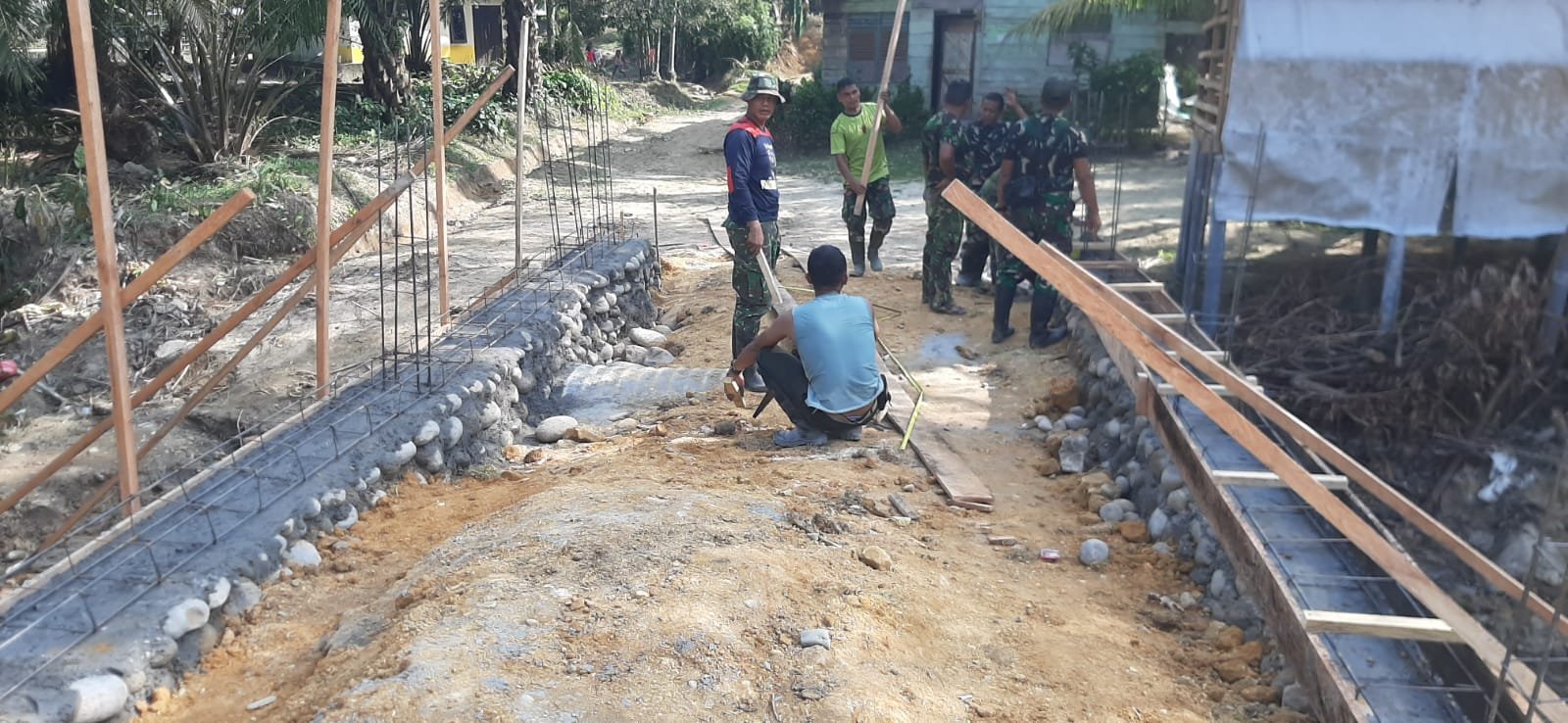 Pengerjaan dilakukan oleh personel Kodim 0203/Langkat dengan melibatkan unsur Zidam I/Bukit Barisan, Koramil, dan Babinsa. Pada tahap akhir, pekerjaan difokuskan pada pengecatan badan jembatan serta perapian area sekitar guna memastikan kesiapan penggunaan.