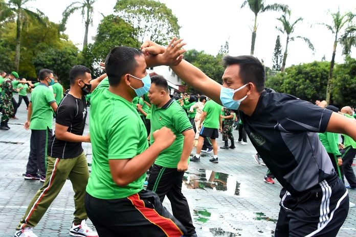 ACTUALNEWS.ID, Bandung – Bekali diri jangan mau dibully dan tingkatkan jiwa korsa. Hal tersebut disampaikan Pangdam III/Siliwangi Mayjen TNI Agus Subiyanto, S.E., M.Si saat memberikan pengarahan sekaligus melatihkan bela diri taktis kepada Prajurit dan PNS bertempat di Lapangan Upacara Makodam III/Siliwangi Jalan Aceh No. 69 Kota Bandung, Selasa (7/12/2021).