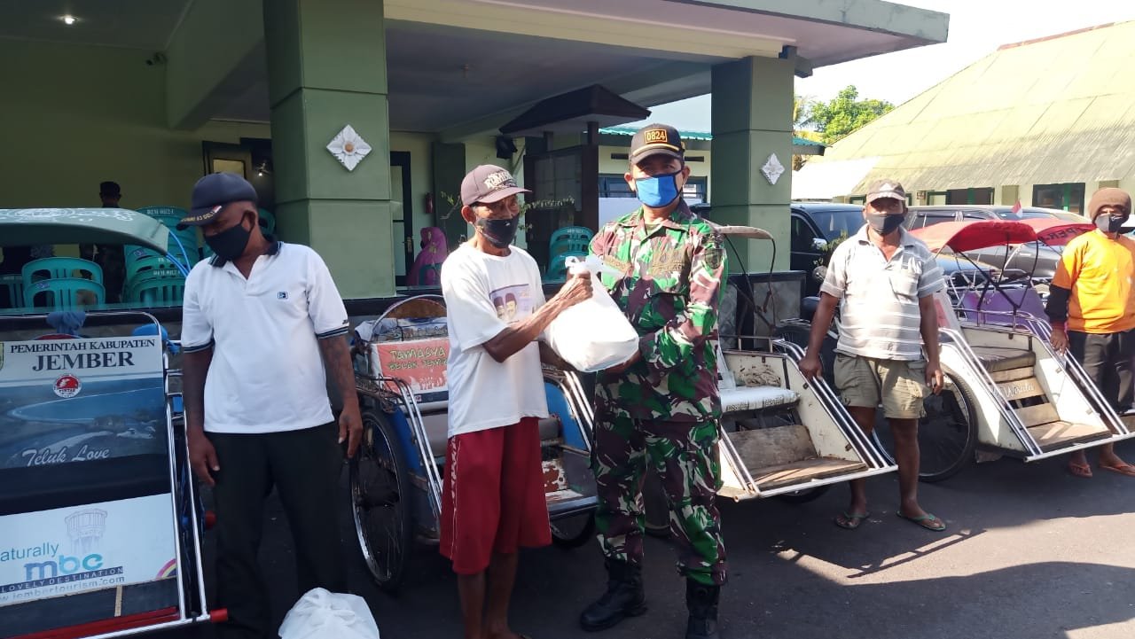 ACTUALNEWS.ID, Jakarta – Sebagai bagian dari peran serta TNI dalam mengurangi dampak Pandemi Covid 19, sekaligus Jum’at Barokah, Kodim 0824/Jember membagikan sembako kepada kaum duafa dan tukang becak, pada Jum’at 11/06/2021.