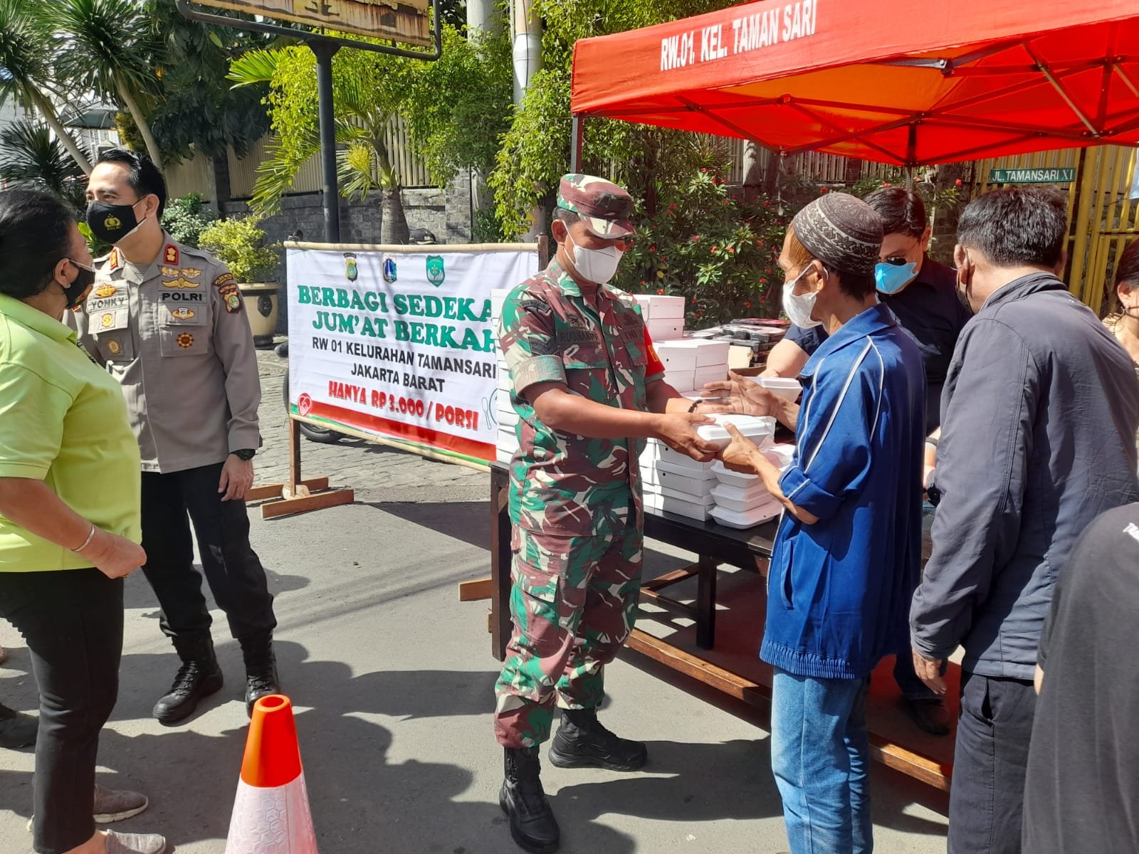 ACTUALNEWS.ID, Jakarta – Guna meringankan beban masyarakat khususnya warga Tamansari di masa pandemic covid-19, Tiga Pilar Kecamatan Tamansari gelar Jum’at berkah di Pos Sekretariat RW. 01, Kel.Tamansari, Jl. Mangga Besar. VIII, RT 08 /01, Kel.Tamansari, Kec. Tamansari, Jakarta Barat. Jum’at, (07/01/22).