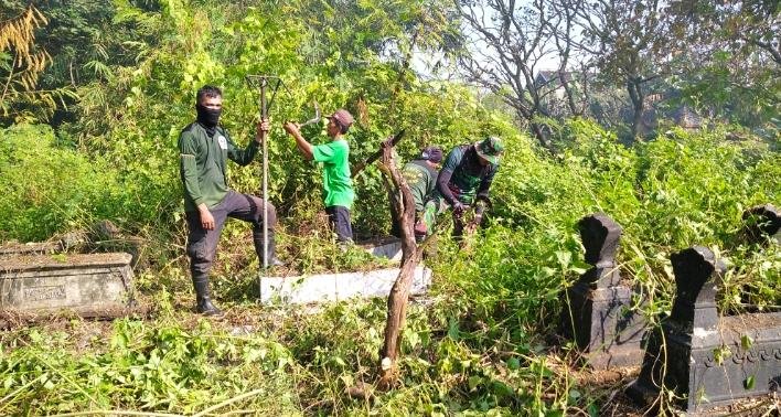 ACTUALNEWS.ID, Surakarta, Salah satu kebudayaan yang menjadi identitas di lingkungan masyarakat adalah kerja bakti, Serka M Nur Hakib Babinsa Kel Joyotakan Koramil 03/Serengan Kodim 0735/Surakarta melaksanakan kerjabakti pembersihan Makam di RW 3 kel Joyotakan kec Serengan Kota Surakarta, Jum’at (22/07/22).