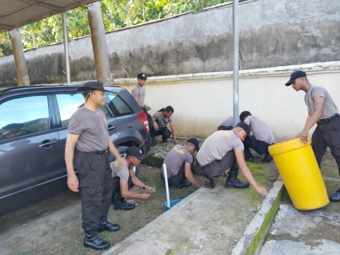 ACTUALNEWS.ID, Wujud kebersamaan guna menciptakan lingkungan kantor yang bersih, seusai pelaksanaan Apel pagi, seluruh personel Polres Bima Yang di pimpin oleh Kapolres Bima AKBP Haryanto SH,SIK, yang diwakili Oleh Wakapolres Bima Kompol Abdurahman Spd melaksanakan kegiatan gotong royong (Kurve), Jumat (06/01/23) Sekira Pukul 08.00.Wita.