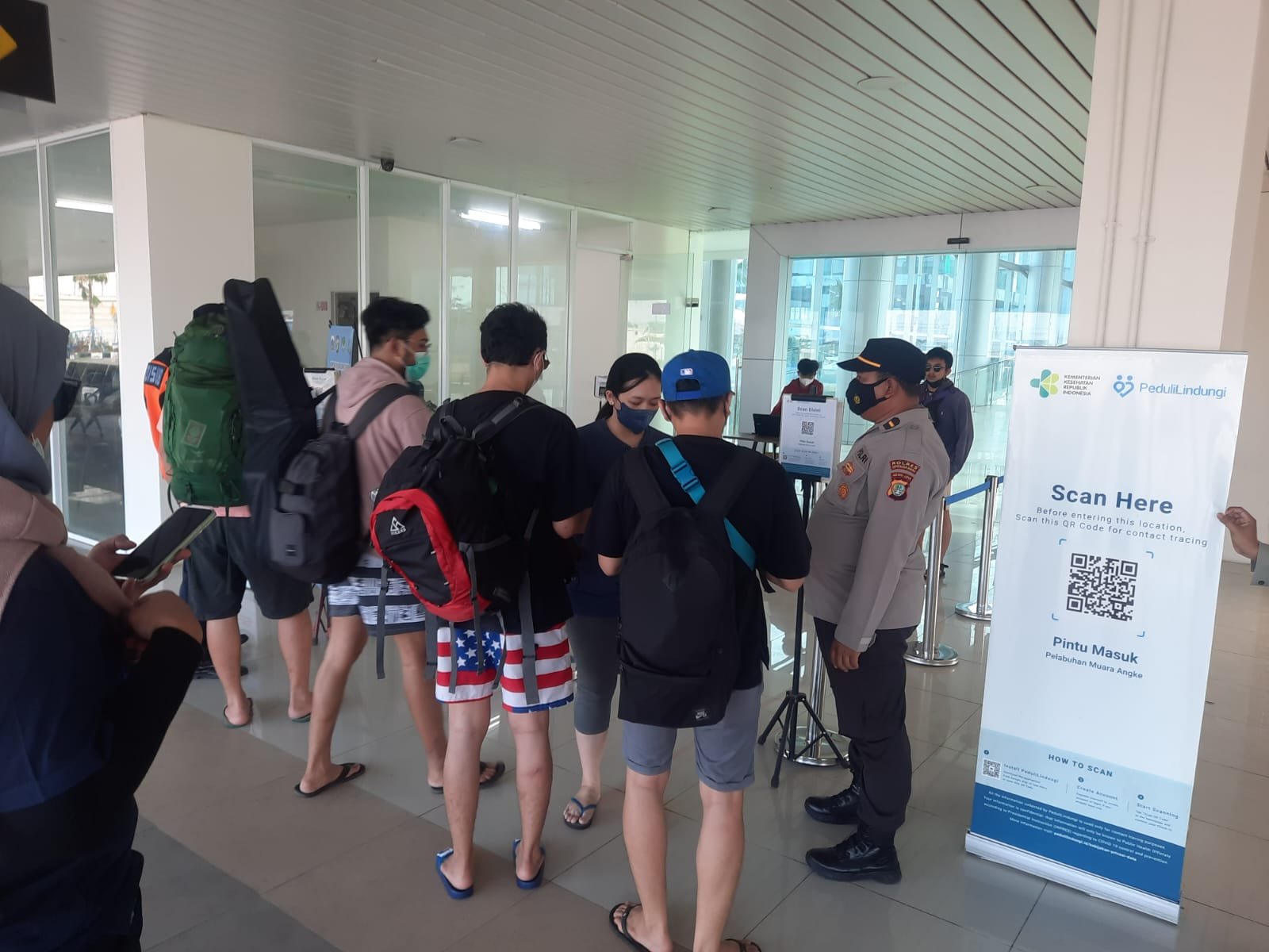 Dalam melaksanakan pengamanan, personil Polres Kepulauan Seribu mewajibkan seluruh penumpang yang untuk scan PeduliLindungi di depan pintu masuk dermaga serta mengimbau untuk menerapkan prokes saat di sudah berada di dalam kapal.