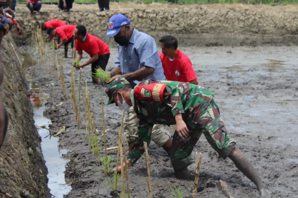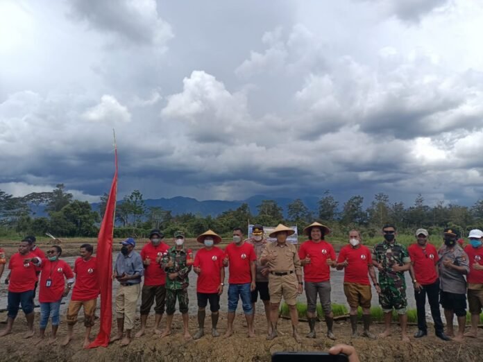 ACTUALNEWS.ID, Wamena – Dandim 1702/Jayawijaya yang diwakili Pasi Intel Kodim 1702/JWY Kapten Inf Sony Teguh Bahtiar, S.T.Han., bersama Pemerintah Kabupaten Jayawijaya melaksanakan penanaman padi perdana di Distrik Assologaima, Kab. Jayawijaya, Senin (14/2).