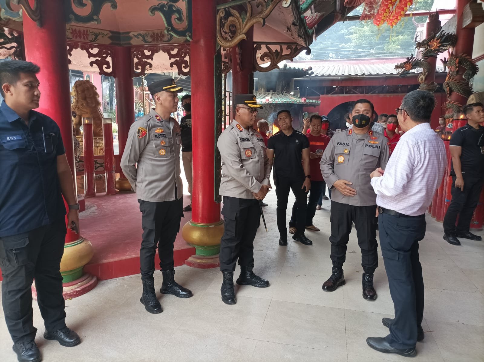 ACTUALNEWS.ID, Jakarta – Kapolda Metro Jaya Irjen Pol. Dr. Moh. Fadil Imran, M.Si. dan Pejabat Utama Polda Metro Jaya turun langsung pastikan kegiatan Pengamanan Perayaan Imlek di DKI Jakarta berjalan dengan aman dan damai, Kapolda didampingi Kapolres Jakarta Utara Kombes Pol. Gidion Arif Setyawan, S.I.K, S.H., M.Hum. meninjau Vihara Satrya Dharma Penjaringan Jakarta Utara sedangkan Karoops Polda Metro Jaya Kombes Marsudianto, S.I.K., M.Si., meninjau Vihara Avalokitesvara Mangga Besar Jakarta Barat dan Dirbinmas Polda Metro Jaya Kombes Pol Badya Wijaya, S.I.K., S.H., M.S.i. meninjau Vihara Kesejahteraan Umat, Kosambi Baru Duri Kosambi Jakarta Barat serta Pejabat Utama dan Kapolres Jajaran lainnya juga melaksanakan pengamanan secara serentak dimasing masing wilayahnya. Minggu (22/1/2023).