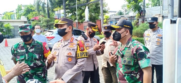 Kunjingan Kapolres bersama Dandim tidak hanya mengecek kesiapan personel gabungan yang melaksanakan pengamanan di Gereja. Tetapi juga mengontrol langsung situasi Gereja.
