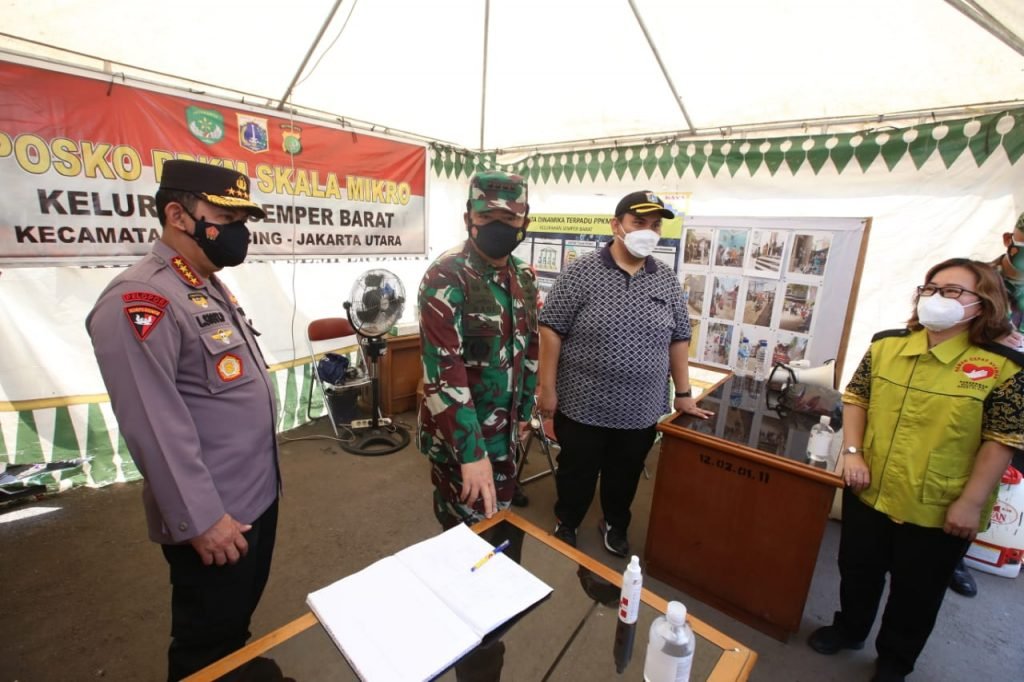 ACTUALNEWS.ID, Jakarta – Panglima TNI Marsekal Hadi Tjahjanto bersama Kapolri Jenderal Listyo Sigit Prabowo dan Menteri Kesehatan Budi Gunadi Sadikin meninjau tempat isolasi pasien COVID-19 di Rusun Nagrak Cilincing dan pos PPKM Mikro di Semper Barat hari ini, Minggu, 27 Juni 2021.