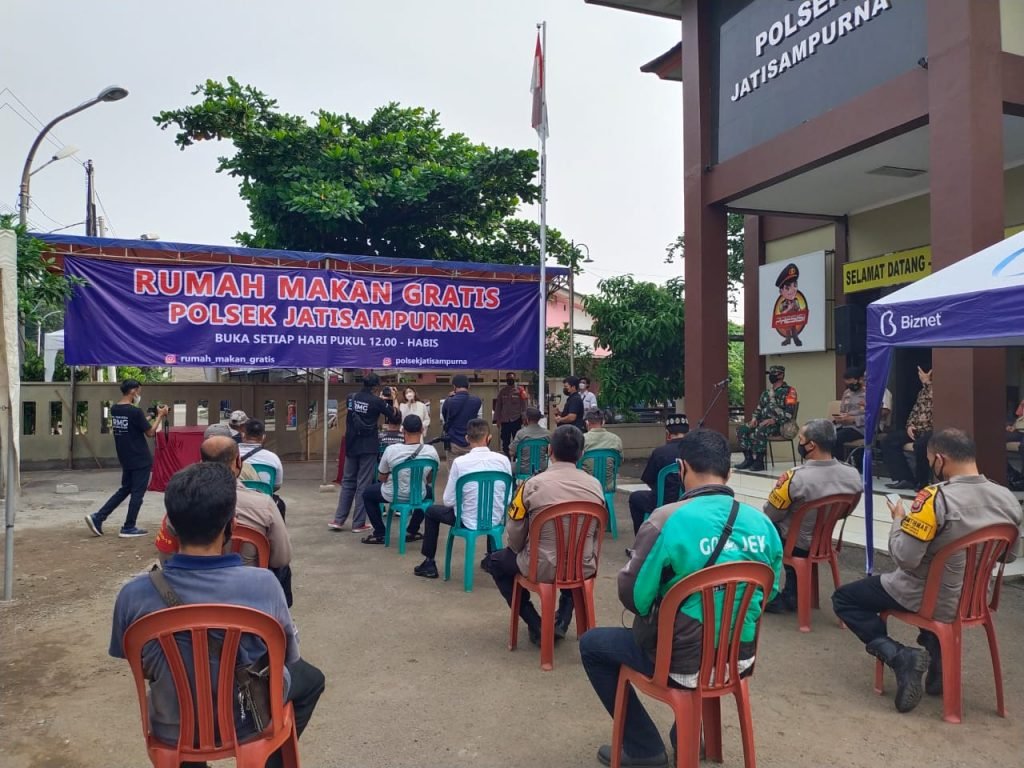 ACTUALNEWS.ID, Jatisampurna – Banyak cara dilakukan masyarakat Indonesia dan relawan kemanusiaan berbagi keberkahan dimasa vandemi ini, termasuk Polsek Jatisampurna Polres Metro Bekasi Kota, membuka rumah makan gratis bagi warga kurang mampu terdampak Covid-19.