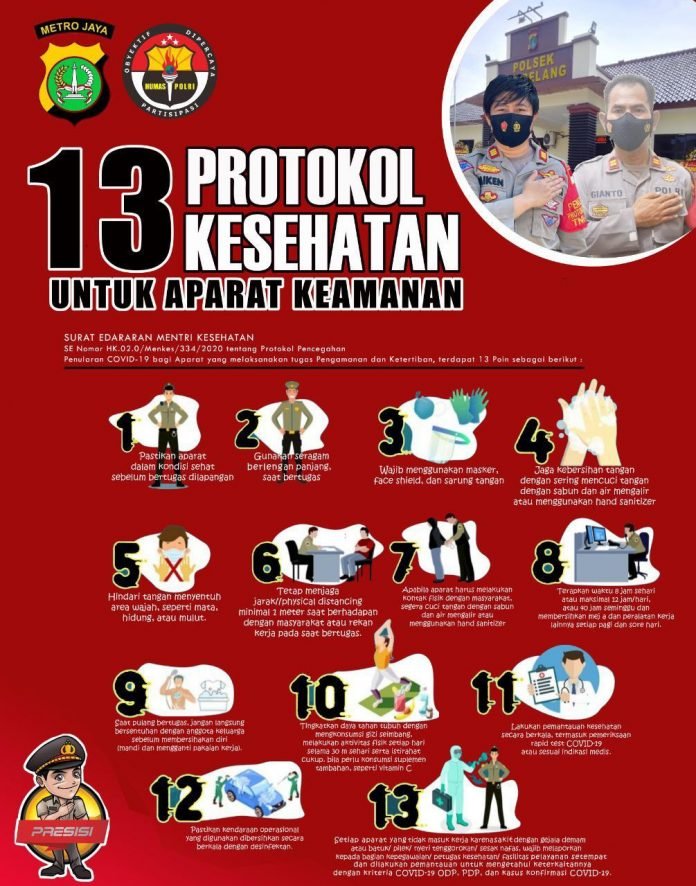 Adapun Prokes yang wajib dijalankan aparat saat bertugas antara lain: