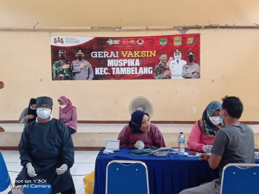 Penanggungjawab utama kegiatan Vaksinasi Gerai 63 wilayah hukum Polsek Tambelang ini adalah Kapolsek Tambelang AKP Miken Fendriyati, SH. MH. dan H. Norsan S.Kep.MM (Kepala Puskesmas Tambelang).