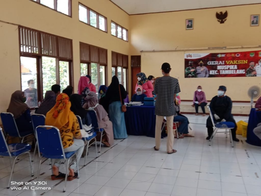 ACTUALNEWS.ID, Bekasi – Polsek Tambelang, Polres Metro Bekasi gelar Operasi Kemanusiaan Dalam Rangka Bhakti Kesehatan Bhayangkara Untuk Negeri berupa Kegiatan Vaksinasi Gerai 63 tahap pertama dan dua bagi masyarakat umum di Gedung Serbaguna, Kampung Tambelang, Rt 002/Rw 004, Desa Sukarapih, Kecamatan Tambelang, Kabupaten Bekasi, Rabu (01/09/2021).