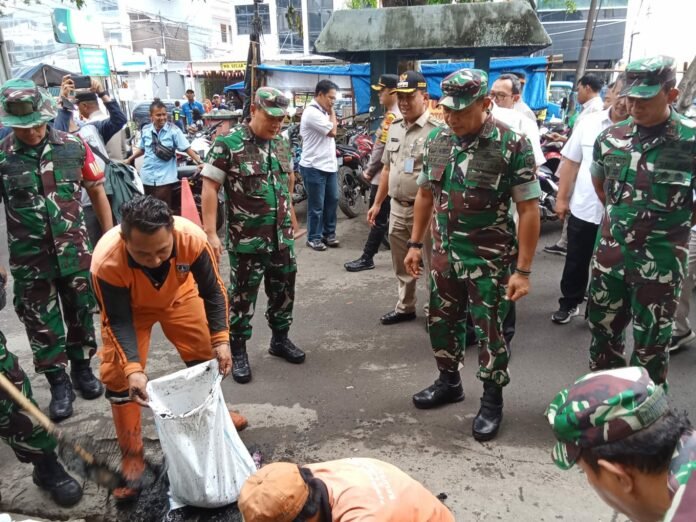 Karya Bakti TNI di pasar Grogol Jakarta Barat ini