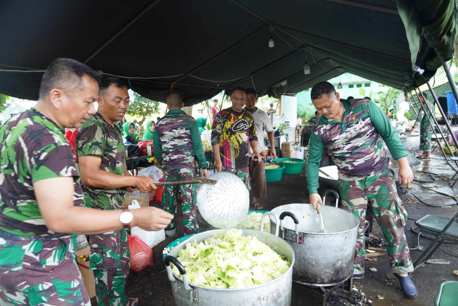 Keberadaan dapur lapangan TNI AD yang diawaki prajurit dari Bekangdam III/Slw ini untuk memenuhi kebutuhan makan masyarakat di tempat pengungsian, dimana dalam operasionalnya menyiapkan makan 3 x sehari dan mampu memproduksi 2500-3000 paket makan setiap kali masak.