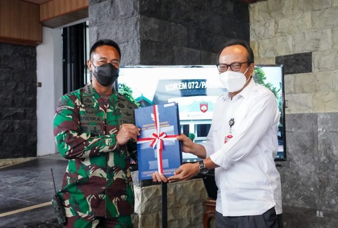 ACTUALNEWS.ID, Jakarta – Kepala Staf Angkatan Darat (Kasad) Jenderal TNI Andika Perkasa menerima penyerahan sertifikat tanah dari Kakanwil BPN Jawa Tengah dan Kakanwil BPN DIY, Sabtu (4/9) bertempat di Markas Korem 072/Pamungkas Yogyakarta.