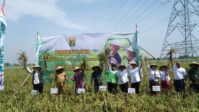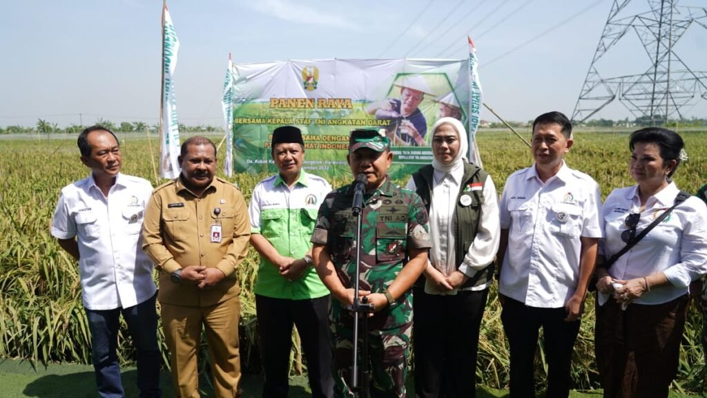 ACTUALNEWS.ID, KARAWANG, tniad.mil.id- Bukti nyata TNI AD membantu pemerintah dalam menyejahterakan masyarakat melalui program ketahanan pangan, ditunjukkan Kepala Staf Angkatan Darat (Kasad) Jenderal TNI Dr. Dudung Abdurachman dengan menghadiri dan melakukan panen raya padi bersama Forkopimda Karawang dan Kelompok Tani Binaan PT. Padi Sehat Indonesia (PSI) di Dusun Kobak Karim, Rengas Dengkok, Karawang Barat, Jabar, Senin (12/12/2022).