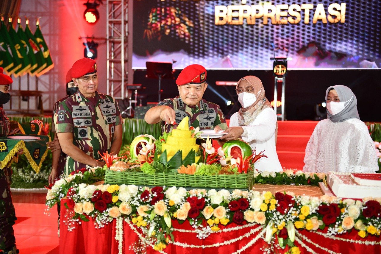 ACTUALNEWS.ID, Jakarta – Kepala Staf Angkatan Darat (Kasad) Jenderal TNI Dudung Abdurachman, S.E., M.M., memimpin acara syukuran memperingati Hari Ulang Tahun (HUT) ke-70 Komando Pasukan Khusus di Gedung Balai Komando Makopassus Cijantung, Jakarta Timur, Sabtu (16/4/2022).