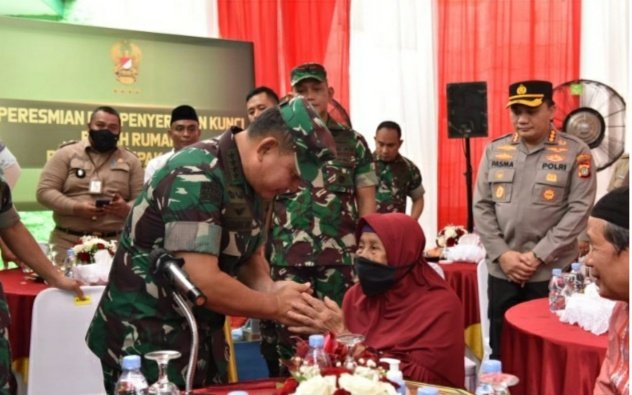 Penyerahan hasil bedah RTLH itu dilaksanakan secara daring di Kodam dan satuan jajaranya, serta diserahkan secara langsung oleh Kasad kepada Muadah (69) salah satu masyarakat penerima manfaat di Kelurahan Pegadungan Kecamatan Kalideres, Jakarta Barat. Selasa, (13/12/2022).