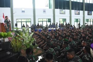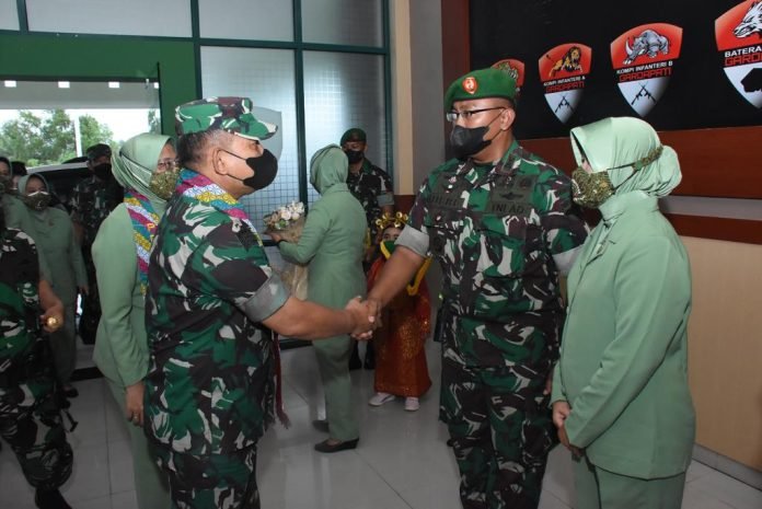 ACTUALNEWS.ID, Kepri – Jenderal TNI Dudung Abdurachman, S.E., M.M., didampingi Ketua Umum Persit Kartika Chandra Kirana Ny. Rahma Dudung Abdurachman beserta rombongan bertatap muka dengan para prajurit di ujung utara NKRI tepatnya di Batalyon Komposit 1/Gardapati yang berlokasi di Kabupaten Natuna, Kepulauan Riau, Selasa (4/1/2022). Kunjungan tersebut merupakan bagian dari rangkaian kunjungan kerja Kasad di wilayah Kodam I/BB.