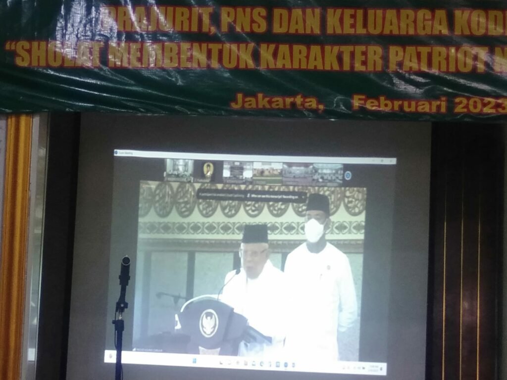 ACTUALNEWS.ID, Kodam Jaya Jakarta – Bertempat di Makodim 0503/JB Kasdim 0503/JB Letkol Inf Dwi Tantomo.S.IP menyaksikan giat sholat subuh berjamaah, Istighosah Kubra, Isra dan Miraj Nabi Muhammad,SAW TA. 2023, dengan tema sholat membentuk karakter patriot NKRI yang di gelar secara Virtual dari Masjid Agung Kabupaten Cianjur Provinsi Jawa Barat oleh Wakil Presiden RI dan KASAD, Minggu (19/2/2023) di Makodim 0503/JB