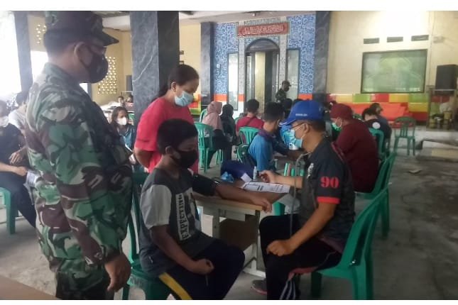 “Untuk kegiatan vaksinasi hari ini masyarakat yang terdaftar sebanyak 110 orang dan yang tervaksin sebanyak 108”. Terang Danramil