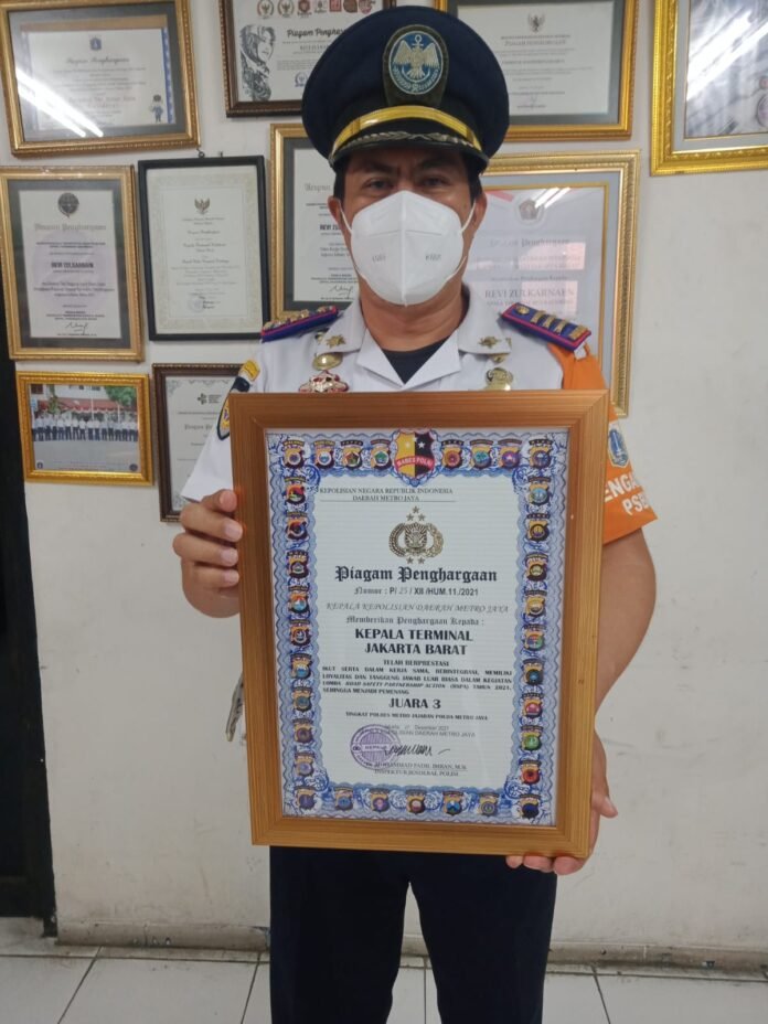 ACTUALNEWS.ID, Jakarta – Kepala Terminal Kalideres meraih prestasi gemilang salah satunya meraih penghargaan juara 3 Road Safety Partnership Action (RSPA) 2021 Tingkat Polda Metro Jaya.