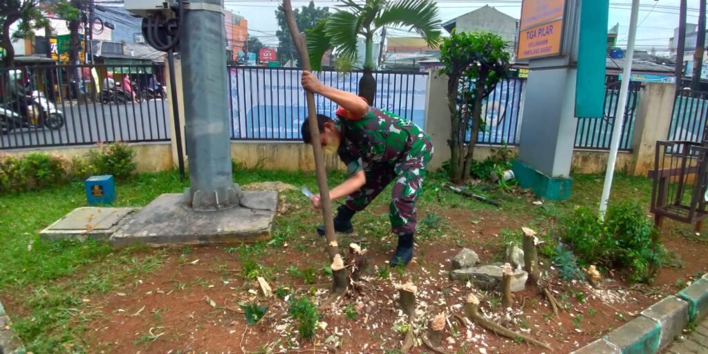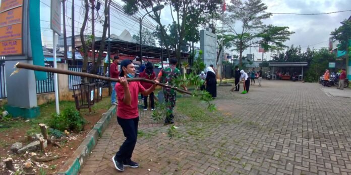 Hari ini, Serma Arman Simangunsong bersama Rahmat Hidayat Lurah Pamulang Barat dan staf Kelurahan Pamulang Barat kerja bakti Jum’at Bersih dengan membersihkan rumput dan ranting – ranting pohon di halaman Kantor Kelurahan Pamulang Barat, Jl.Dr Setia Budi,Kel.Pamulang Barat, Kec Pamulang, Tangerang Selatan Tangerang Selatan, Jumat (01/04/2022).