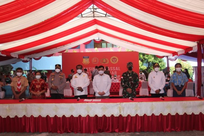 “Bapak Kasdam XVII/Cenderawasih Brigjen TNI Bambang Trisnohadi hadir di SMPN 1 Kota Jayapura dan Bapak Irdam XVII/Cenderawasih Brigjen TNI Wachid Apriliyanto hadir di SMAN 1 Sentani Jayapura untuk melihat secara langsung kegiatan vaksinasi massal yang disaksikan oleh Presiden RI secara virtual,” jelas Asisten Teritorial.