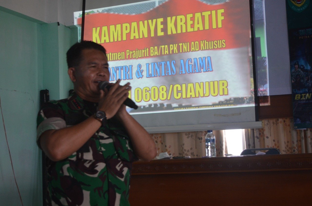 Dandim 0608//Cianjur, Letkol Arm Haryanto melalui Kasdim 0608/Cianjur, Mayor Chb A. Khoirulloh Amin mengatakan, sosialisasi tersebut sebagai tindak lanjut Perintah Kepala Staf TNI AD (KSAD) Jenderal TNI Dudung Abdurachman untuk merekrut anggota TNI AD dari kalangan Pondok Pesantren atau santri dan lintas agama.
