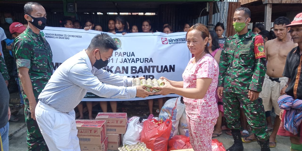 Pasiter Kodim 1701/Jayapura Mayor Inf Edi Triwanto menyampaikan bahwa Bantuan yang diberikan saat ini merupakan kerjasama antara Kodim 1701/Jayapura dengan PT. Sinar Mas sebagai bentuk kepedulian kepada korban bencana alam banjir.