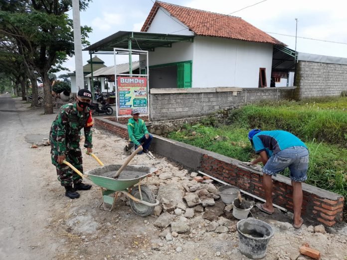ACTUALNEWS.ID, Sragen – Senin, 8 November 2021 pukul 09.00 Wib Sertu Sunarto Babinsa Mojodoyong Koramil 05/Kedawung Kodim 0725/Sragen melaksanakan Karya Bakti bersama masyarakat di dukuh Mojodoyong Rt 07 Desa Mojodoyong Kecamatan Kedawung Karya bakti Pembuatan talud jalan di dukuh Mojodoyong ini sumberdana dari swadaya masyarakat dan dikerjakakan oleh masyarakat mojodoyong secara bergantian sesuai jadwal yang telah di susun warga.