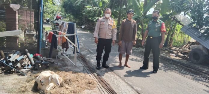 ACTUALNEWS.ID, Sragen, Babinsa Desa Ngarum Serma Suprapto Anggota Koramil 07/Ngrampal Kodim 0725/Sragen melaksanakan kegiatan Komsos dengan Dwi Suprapto ( anak Bp. Sukadi/ pemilik ternak Sapi yang terjakit PMK ) Dk. Warek RT 21, Desa Ngarum, Kec. Ngrampal, Kab. Sragen.
