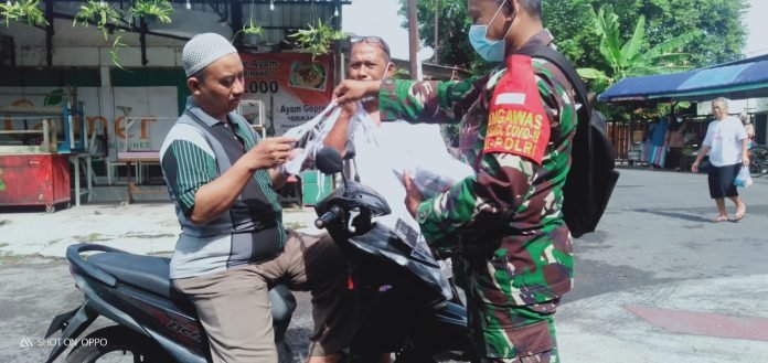 Kodim Surakarta- Masyarakat Mulai Lupa, Inilah Aksi Babinsa Serengan Ingatkan Prokes dan Bagi Masker Gratis
