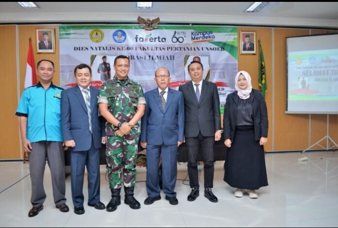 Orasi ilmiah dalam rangka Dies Natalis Fakultas Pertanian Universitas Jenderal Soedirman (Unsoed) Purwokerto yang ke-60 dengan narasumber Danrem 071/Wijayakusuma Kolonel Inf Yudha Airlangga, S.E., dan Prof. Dr. Ir. Tamad, M.Si., Guru Besar Fakultas Pertanian Unsoed.