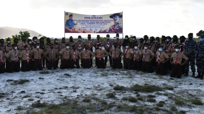 ACTUALNEWS.ID, Kepulauan Anambas – Dalam rangka melaksanakan Program Kerja Bidang Potensi Maritim (Potmar), Pramuka Saka Bahari Binaan Pangkalan TNI AL Tarempa selenggarakan Perkemahan Jum’at, Sabtu dan Minggu (Perjusami) di Pantai Pasir Timbun Tanjung Momong, Desa Tarempa Timur, Kecamatan Siantan, Kabupaten Kepulauan Anambas, Jumat (11/3/2022).