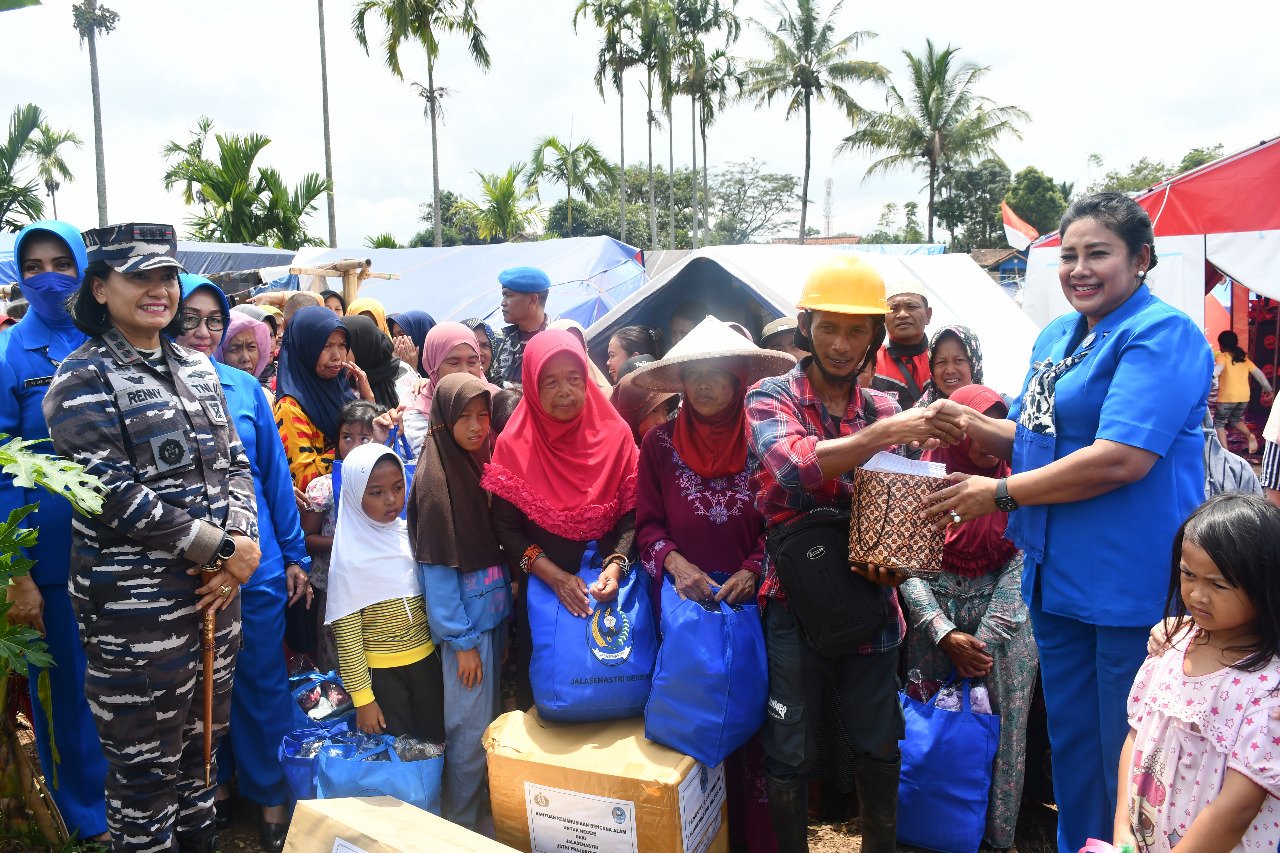 Komandan Lanal Bandung Dampingi Ketua Umum PP Jalasenastri Berikan Bantuan Kemanusiaan Bagi Korban Bencana Alam di Cianjur