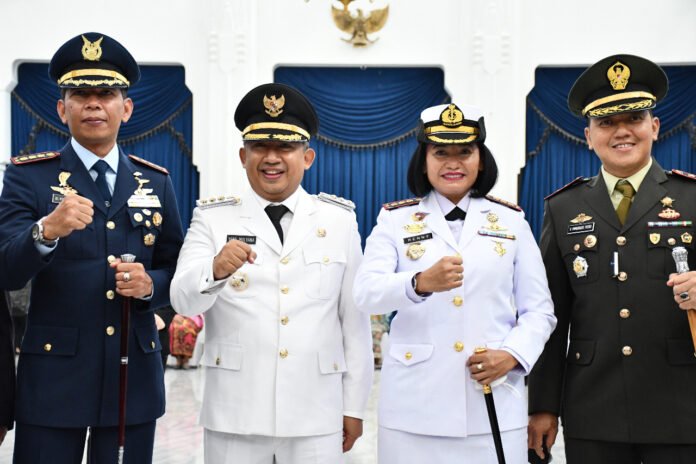 ACTUALNEWS.ID, Bandung – Komandan Lanal Bandung Kolonel Laut (KH/W) Dr. Renny Setiowati, S.T., M.Sc., M.Tr.Hanla., bersama unsur Forkompinda Kota Bandung menghadiri Undangan Pelantikan Walikota Bandung Sisa Masa Jabatan Tahun 2018-2023, bertempat di Aula Barat Gedung Sate, Jalan Diponegoro No. 2, Kota Bandung, Senin (18/04/2022).