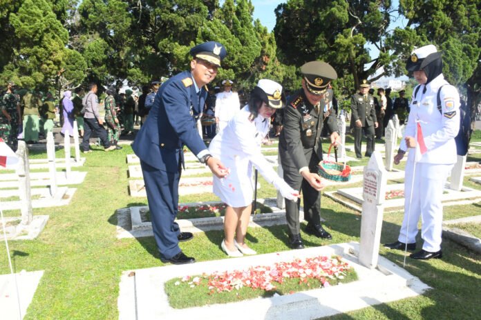 ACTUALNEWS.ID, Bandung,- Komandan Lanal Bandung Kolonel Laut (KH/W) Dr. Renny Setiowati, S.T., M.Sc., M.Tr.Hanla., menghadiri Ziarah Nasional dalam rangka HUT TNI Ke-77 Tahun 2022 dengan Pimpinan Acara Dansesko AU Marsda TNI Minggit Tribowo, SI.I.P., bertempat di Taman Makam Pahlawan Nasional Cikutra Bandung, Jalan Cikutra, Neglasari, Kecamatan Cibeunying Kaler, Kota Bandung, Selasa (04/10/2022).