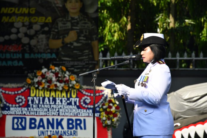 ACTUALNEWS.ID, Bandung,- Komandan Pangkalan Angkatan Laut (Danlanal) Bandung Kolonel Laut (KH/W) Dr. Renny Setiowati, S.T., M.Sc., M.Tr.Hanla., memimpin Upacara Peringatan HUT ke-77 TNI Angkatan Laut Tahun 2022, di Lapangan Apel Markas Komando (Mako) Lanal Bandung, Jalan Aria Jipang No. 8 Kota Bandung, Senin (12/9/2022). Bertindak selaku Komandan Upacara Kapten Laut (S) Eko Susanto yang sehari-hari menjabat sebagai Ka. Akun Lanal Bandung.