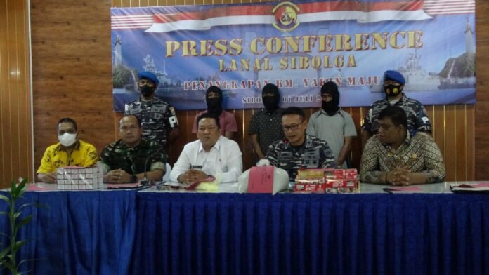 ACTUALNEWS.ID, Siboga,- Komandan Lanal Sibolga Letkol Laut (P) Cahyo Pamungkas, M.Tr. Opsla, menggelar Press Conference dalam keberhasilan penangkapan tersangka kasus kapal pengeboman ikan secara iIlegal (Illegal Fishing) di sekitar Perairan Tenggara Pulau Poncan Besar yang dilakukan oleh KM. Yakin Maju 02 nelayan asal Sibolga. Kegiatan dilaksanakan di Aula Zulkifli Tanjung Mako Lanal Sibolga, Jumat (01/07/2022).
