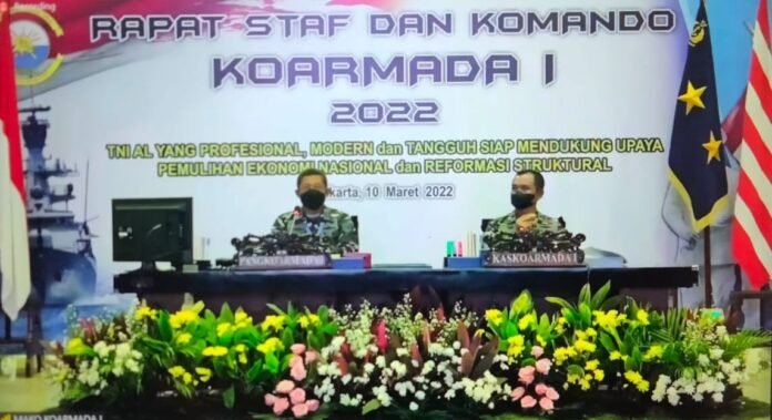 ACTUALNEWS.ID, Kepulauan Anambas – Komandan Lanal Tarempa Letkol Laut (P) Yovan Ardhianto Yusuf, S.E., M.Tr. Opsla., mengikuti Rapat Staf dan Komando (Rasko) Komando Armada I (Koarmada I) secara virtual di Ruang Puskodal Markas Komando Lanal Tarempa, Kamis (10/03/2022).