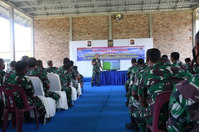 ACTUALNEWS.ID, Tanjung Balai – Komandan Pangkalan TNI AL Tanjung Balai Asahan Letkol Laut (P) Aan Prana Tuah Sebayang, S.E., D.W.C., menerima Tim Pengawasan dan Pemeriksaan Inspektorat Komando Armada I (Wasrik It Koarmada 1) yang dipimpin Kolonel Laut (P) Horas Wijaya Sinaga, S.E., CRMP., didampingi Letkol Laut (KH) Benny Davidson S.T., M.T. MTR di Mako Lanal Tanjung Balai Asahan, Jalan Tanjung Berombang, Asahan Mati, Kabupaten Asahan, Rabu (30/3/2022).