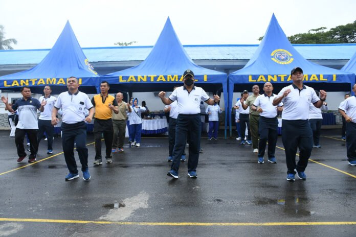 ACTUALNEWS.ID, Belawan,- Komandan Lantamal I Belawan Laksamana Pertama TNI Johanes Djanarko Wibowo didampingi Pejabat Utama Lantamal I serta Kadis/Kasatker Lantamal I menghadiri olahraga bersama Jelang Hari Ulang Tahun (HUT) Marinir ke 77 Tahun 2022, bertempat di Batalyon Marinir Pertahanan Pangkalan (Yonmarhanlan), Jalqn Serma Hanafiah No. 1 Belawan, Jumat (11/11/2022).