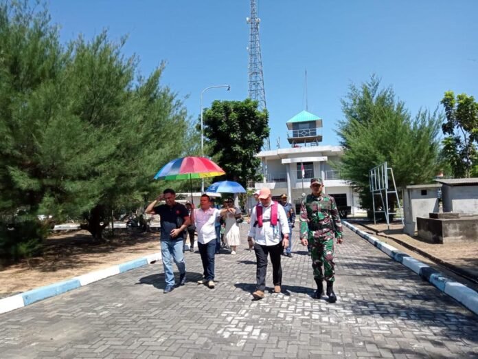 ACTUALNEWS.ID, Batam,- Pos TNI AL Pulau Nipa menerima kunjungan dari Deputi I Bidang Koordinasi Kedaulatan Maritim dan Energi Kementerian Koordinator Kemaritiman dan Investasi Basilio Dias Araujo, S.S., M.A., dan Direktur Utama PT. Krakatau Bandar Samudera Muhamad Akbar beserta rombongan, Kamis (07/07/2022).