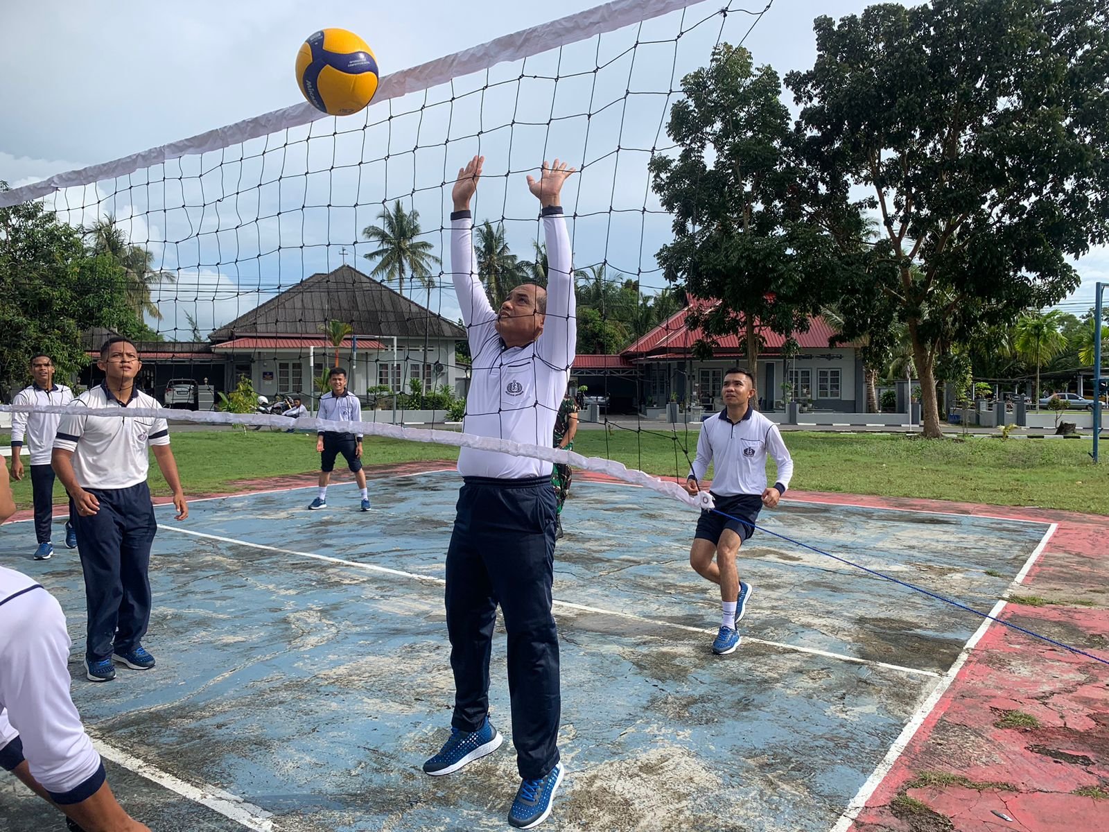 Kegiatan olahraga bersama diawali dengan peregangan/stretching dilanjutkan lari bersama keliling kota diakhiri cooling down serta olahraga tambahan volley ball.