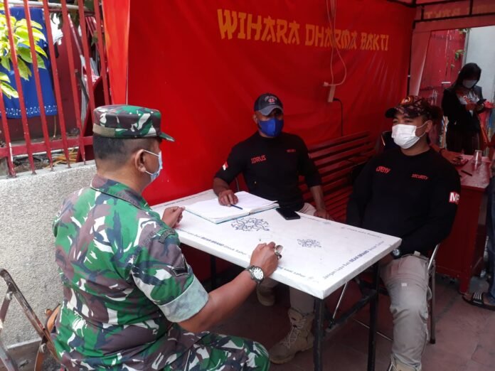 ACTUALNEWS.ID, Kodim 0503/JB, Koramil 01/TS – Dalam memberikan himbauan dan Sosialisasikan protokol kesehatan (Prokes) di Vihara, Babinsa Koramil 01/Tamansari Kodim 0503/Jakarta Barat, Serda Amramus melaksanakan Komunikasi Sosial (Komsos) bersama Security Vihara Dharma Bakti, Bapak Idrus.