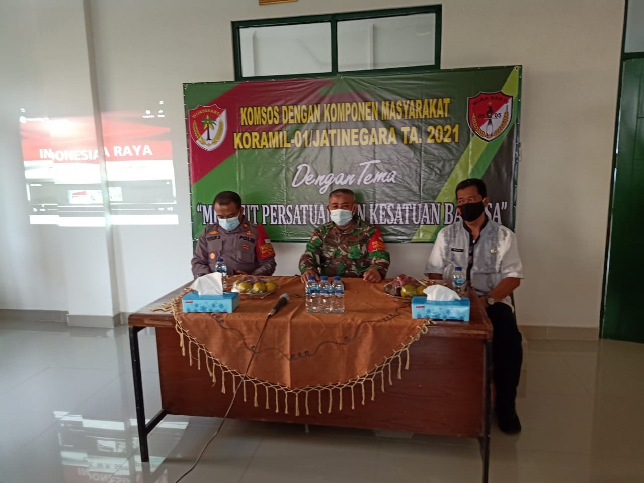 ACTUALNEWS.ID, Kodim 0505/Jakarta timur – Dalam rangka menjalin tali silaturahmi, Koramil 01 Jatinegara menggelar kegiatan Komsos dengan Mengusung Tema Merajut Persatuan Dan Kesatuan Bangsa dengan komponen masyarakat bertempat di Aula Makoramil 01/Jatinegara, Senin (31/05/21).