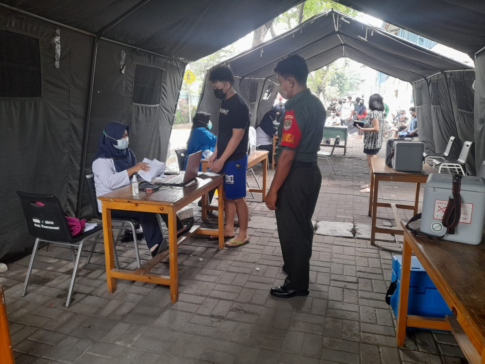 ACTUALNEWS.ID, Kodam Jaya, Jakarta Barat – Dengan berkolaborasi Team Medis Puskesmas Tamansari, Koramil 01/Tamansari gelar serbuan vaksin di halaman stadion sepak bola tamansari, Jalan Mangga Besar VI Utara, Rt. 08/01. Kel. Tamansari, Kec. Tamansari dengan penanggung jawab Pgs Danramil 01/TS, Mayor Inf Missin MD.