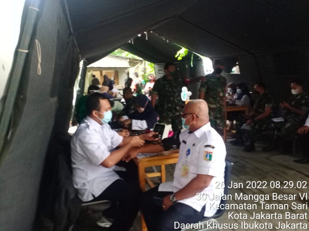 ACTUALNEWS.ID, Jakarta Barat – Pelaksanaan vaksinasi dosis 3 (Booster) yang dilaksanakan di halaman Kantor Kelurahan Glodok sesuai laporan Babinsa Koramil 01/Tamanasari, Serda Amramus yang memonitoring kegiatan menyampaikan, Total tervaksin sebanyak 82 orang.