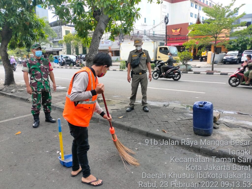 ACTUALNEWS.ID, Jakarta Barat – Kodim 0503/JB, Koramil 01/Tamansari – Sebanyak 43 Pelanggar protokol kesehatan terjaring dalam operasi yustisi yang di gelar tiga pilar Kecamatan Tamansari di Jalan Mangga Besar Raya, Rw. 01, Kel Tangki, Kec.Tamansari, Jakarta Barat. Rabu (23/2).