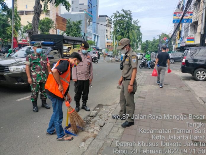 ACTUALNEWS.ID, Jakarta Barat – Kodim 0503/JB, Koramil 01/Tamansari – Sebanyak 43 Pelanggar protokol kesehatan terjaring dalam operasi yustisi yang di gelar tiga pilar Kecamatan Tamansari di Jalan Mangga Besar Raya, Rw. 01, Kel Tangki, Kec.Tamansari, Jakarta Barat. Rabu (23/2).